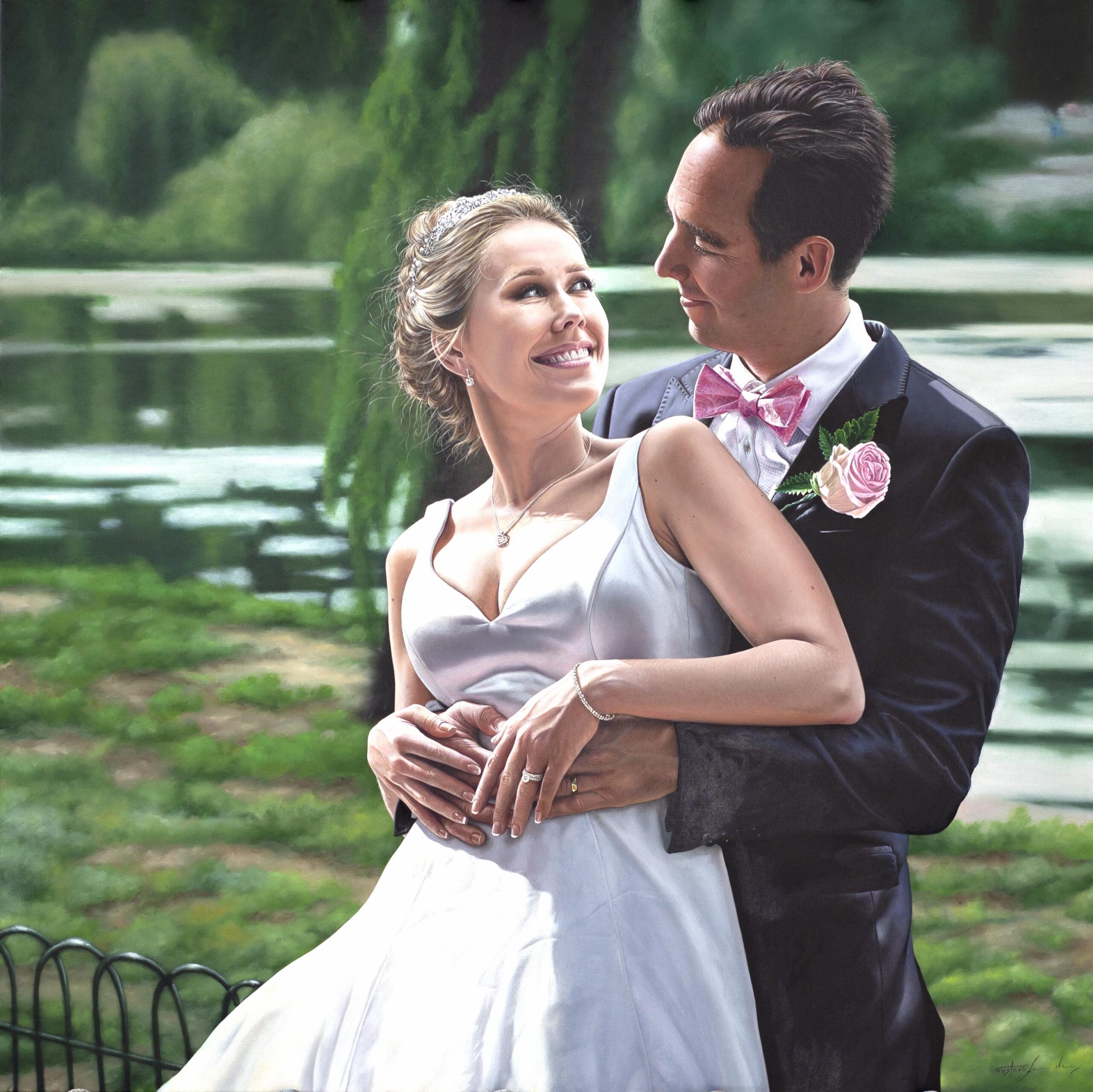 O retrato é executado manualmente pelo artista.